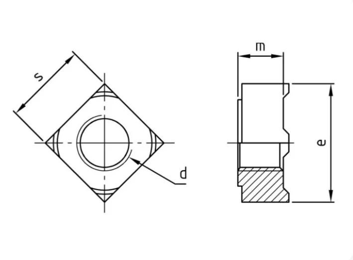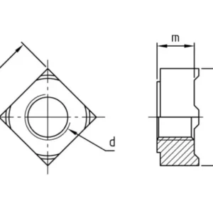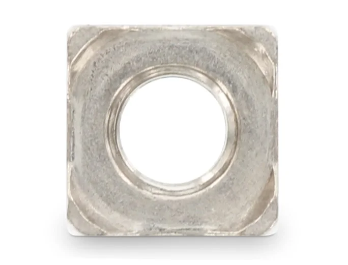 Изделие имеет квадратную форму корпуса, на углах которого расположены четыре специальных выступа (сварочных бобышки). При монтаже методом контактно-точечной сварки ток концентрируется именно на этих выступах, что обеспечивает равномерное расплавление металла и формирование сверхпрочного соединения с поверхностью основания без деформации основной резьбы. Квадратная геометрия гайки способствует удобному позиционированию и предотвращает ее проворачивание в процессе сварки.