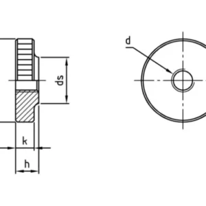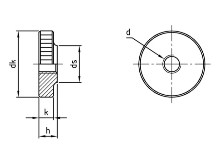 Крепеж полностью соответствует немецкому стандарту DIN 467. Нержавеющая сталь A1 содержит присадки, улучшающие обрабатываемость металла, что гарантирует высокую точность нарезания внутренней метрической резьбы и четкость рифления на внешней стороне.
