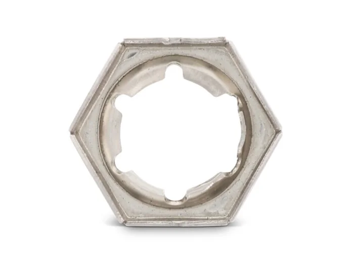 В отличие от стандартных стопорных гаек, DIN 7967 имеет малый вес и компактные габариты. Ее работа основана на пружинных свойствах материала: при навинчивании на стержень болта или шпильки поверх основной гайки, внутренние грани контргайки плотно прилегают к резьбе и торцевой поверхности основного метиза. Это создает дополнительное осевое напряжение, которое блокирует соединение.