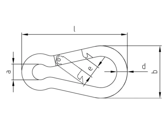 Изделие выполнено по стандарту, близкому к DIN 5299 Form C. Основным механизмом фиксации является подпружиненный затвор, который предотвращает самопроизвольное размыкание петли.