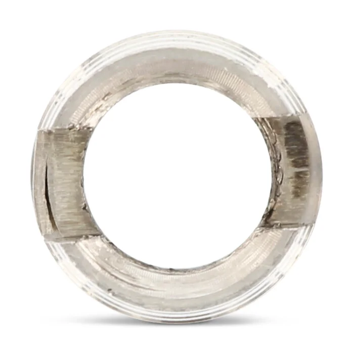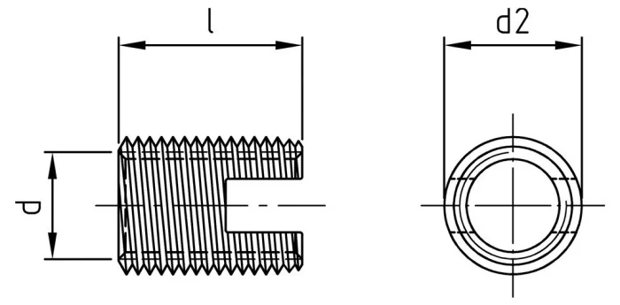 Основным отличием модели Art. 9058 является наличие продольной прорези в нижней части корпуса. Данный конструктив выполняет роль режущей кромки, которая эффективно отводит стружку при монтаже. Вставка имеет как внешнюю, так и внутреннюю метрическую резьбу. При ввинчивании в основу вставка плотно фиксируется за счет деформационного напряжения, что гарантирует высокую сопротивляемость вырыванию и устойчивость к вибрационным нагрузкам.