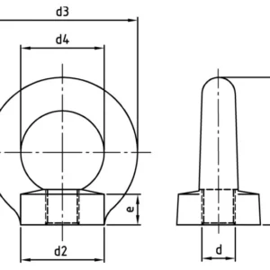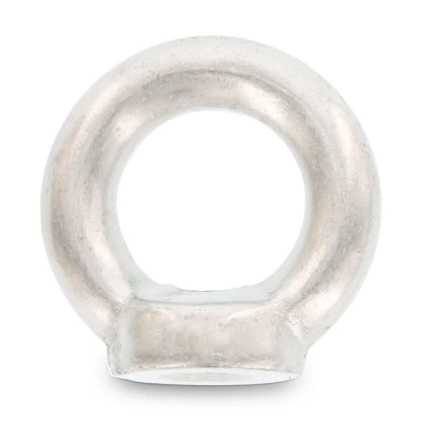 Изделие изготавливается методом ковки или литья с последующей прецизионной обработкой резьбовой части. Геометрия рым-гайки строго регламентирована стандартом DIN 582, что гарантирует заявленную грузоподъемность (WLL — Working Load Limit) при соблюдении векторов нагрузки. Внутренняя метрическая резьба выполнена с допуском 6H, обеспечивая плотную посадку на болты, шпильки или анкеры.