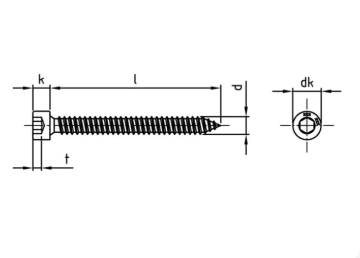 - Форма головки: Цилиндрическая.