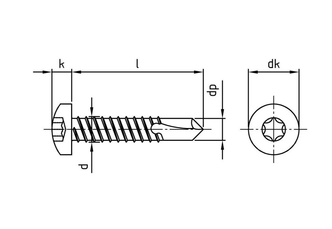 - Шаг резьбы: Мелкий (метрический шаг для саморезов по металлу).