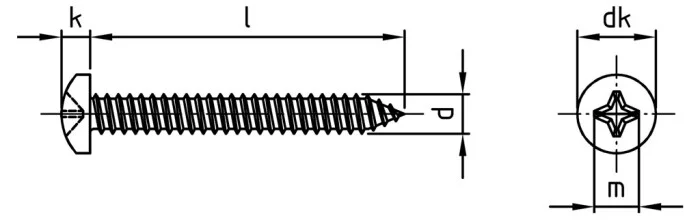 самореза с полукруглой головкой острого, DIN 7981, нержавеющая сталь: А2, А4