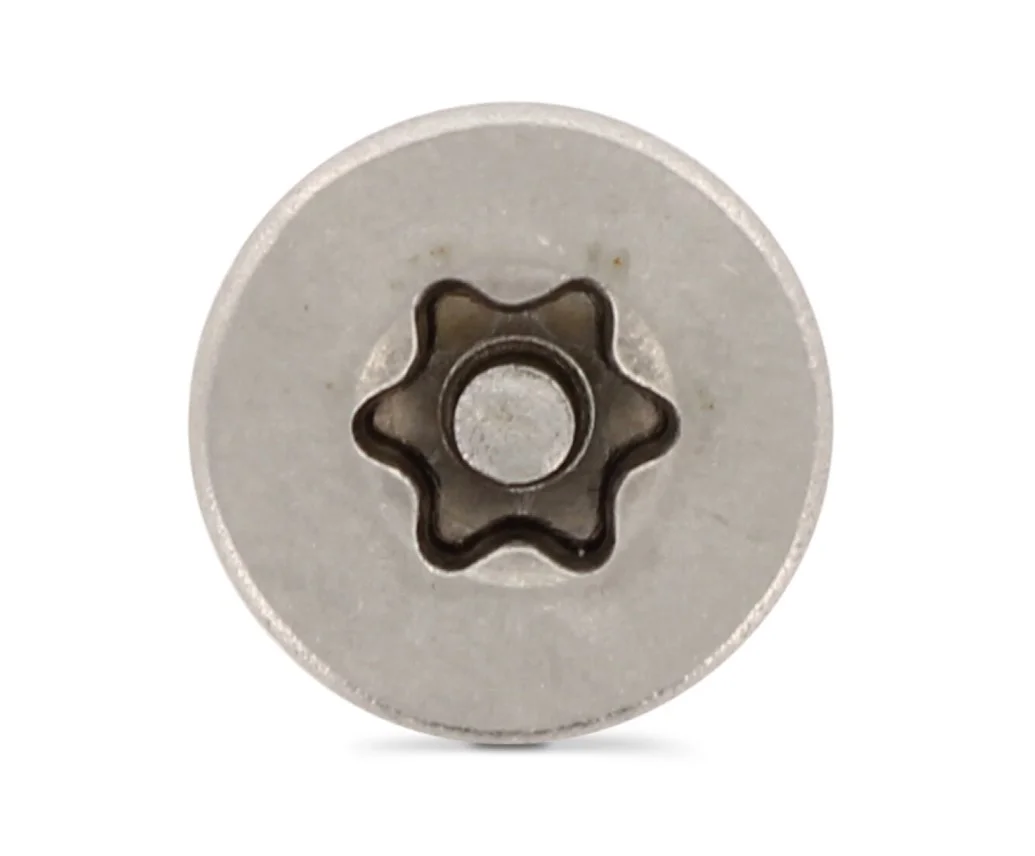Главной отличительной чертой изделия является шлиц Torx-pin (Security Torx). В центре стандартной шестилучевой звезды расположен металлический штифт (пин), который исключает возможность использования стандартных бит типа TX или обычных отверток.