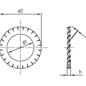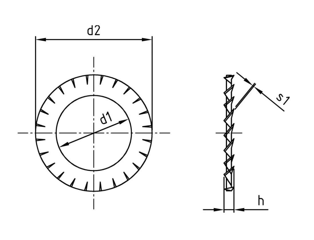 - Форма A (внешние зубцы): Зубцы расположены по внешнему контуру шайбы и развернуты под углом к плоскости. При затяжке они пружинят, обеспечивая постоянное осевое давление.