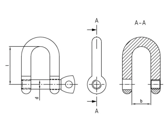 Конструкция скобы включает в себя U-образное тело и винтовой штифт (палец), который вкручивается непосредственно в тело скобы. Такая схема позволяет оперативно монтировать и демонтировать такелажную оснастку без применения специального инструмента.