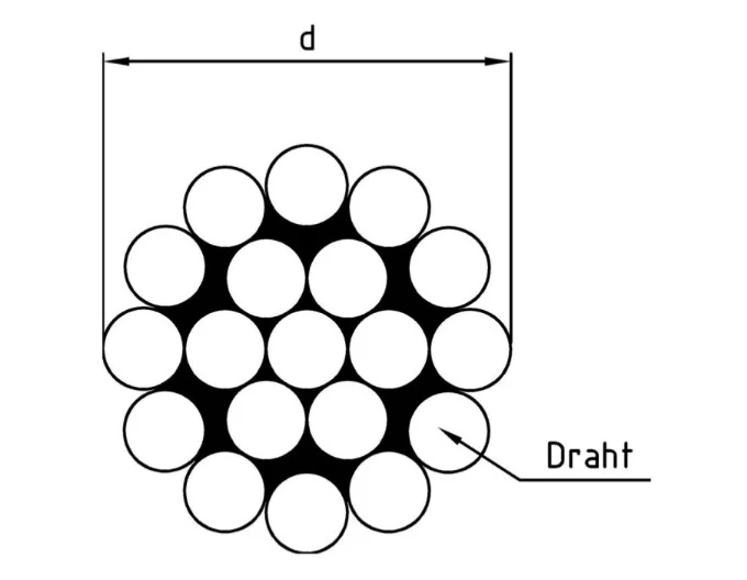 - Высокое разрывное усилие: Благодаря плотной укладке проволок трос выдерживает значительные осевые нагрузки.