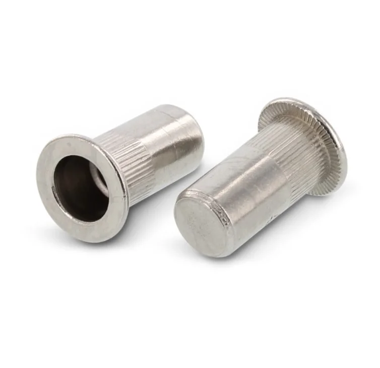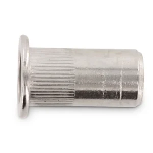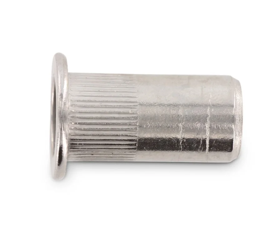 - Цилиндрический корпус с насечками: Продольное рифление на внешней поверхности заклепки обеспечивает повышенное сопротивление прокручиванию в отверстии, что критически важно при монтаже в мягкие или тонкие металлы.