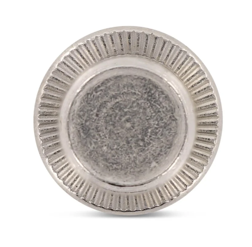 - Цилиндрический бортик: Стандартный фланец обеспечивает надежную фиксацию и распределение нагрузки на поверхность скрепляемых деталей, создавая небольшое выступение над плоскостью.